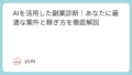 AI 成功者が教える!「AIブログ稼ぐ」ための5つの秘訣【今すぐ実践】 成功者たちが実践する「AIブログで稼ぐ」ための秘訣を徹底解説します。収益化を目指すなら、基礎知識からコンテンツ制作、マーケティング、マネタイズまでの戦略を理解することが重要です。今すぐ取り組むことで、あなたのブログも成功へと導かれるでしょう。 2024.12.30 AI